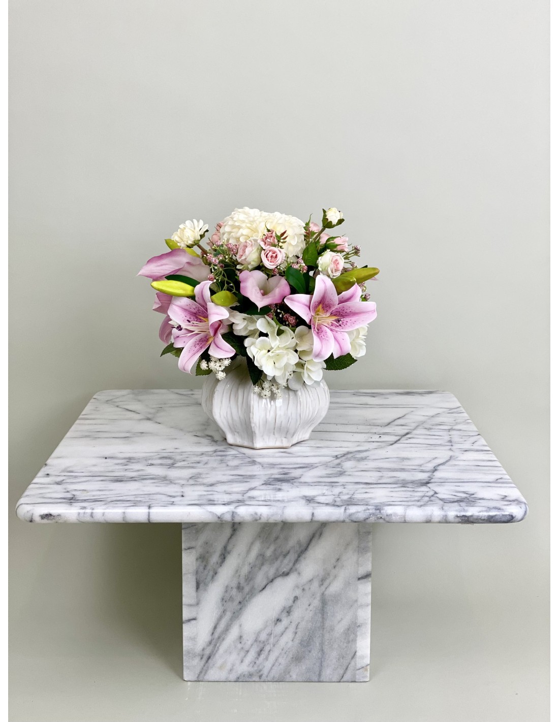 Unsere Seidenblumen-Gestecke sind individuell angefertigte Einzelstücke und können auch nur einmal genau in dieser Art zu bestellt werden. Auf Wunsch fertigen wir Ihnen auch weitere sehr ähnliche Arrangements an.