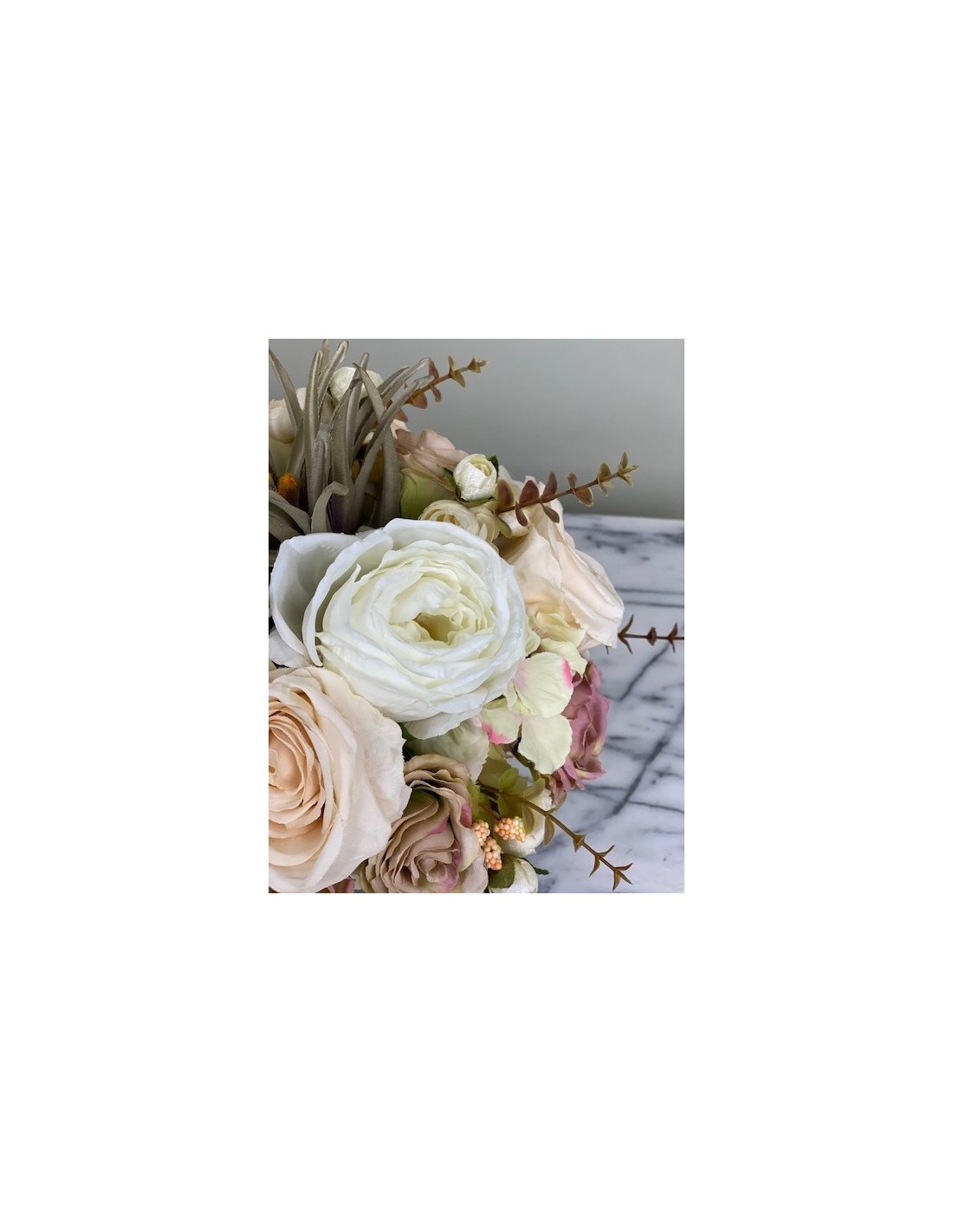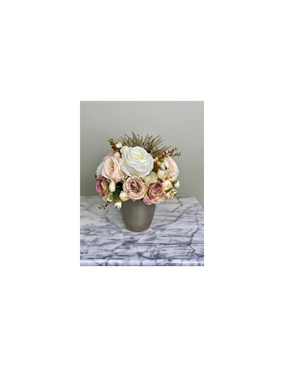 Künstliche Blumen Arrangement in einer VaseHaben Sie auch immer gerne einen blühenden Blumen auf dem Tisch stehen, an dem Sie sich jeden Tag erfreuen? Nur schade, dass die Freude nur so lange hält, wie auch die Blumen blühen. An unseren handgefertigten Arrangements aus Kunststoff können Sie sich das ganze Jahr über erfreuen.Das Arrangement hat eine Höhe von ca. 37 cm, Gesamtdurchmesser von ca. 31