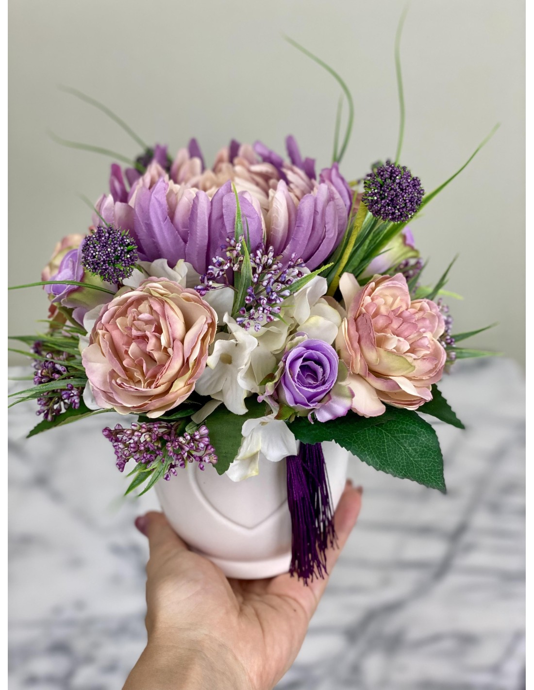 Haben Sie auch immer gerne einen blühenden Arrangement Blumen auf dem Tisch stehen, an dem Sie sich jeden Tag erfreuen? Nur schade, dass die Freude nur so lange hält, wie auch die Blumen blühen. An unseren handgefertigten Arrangements aus Kunststoff können Sie sich das ganze Jahr über erfreuen.