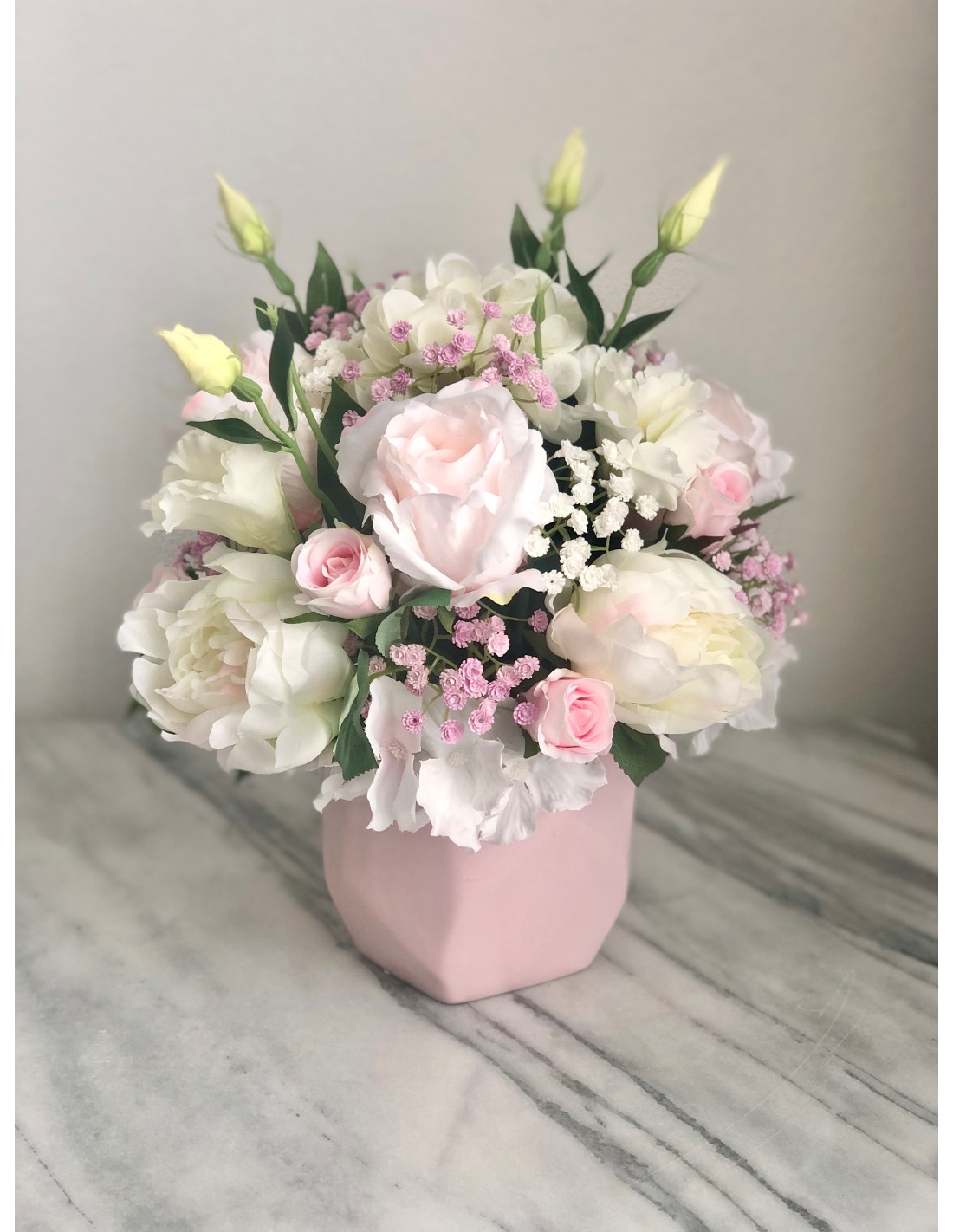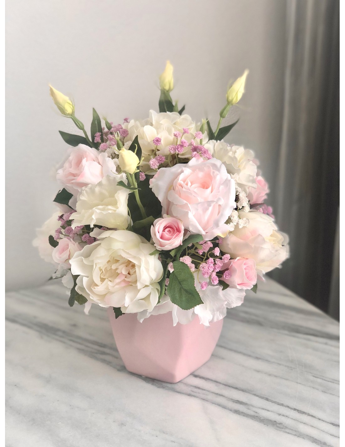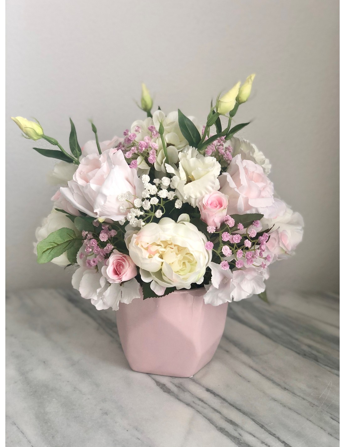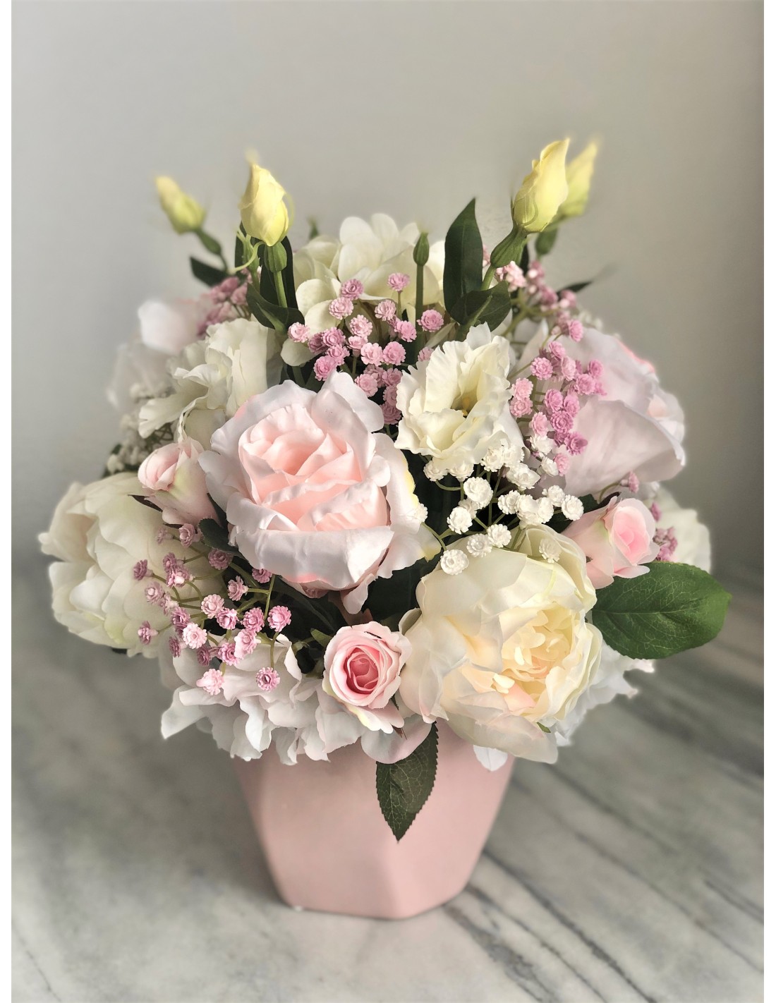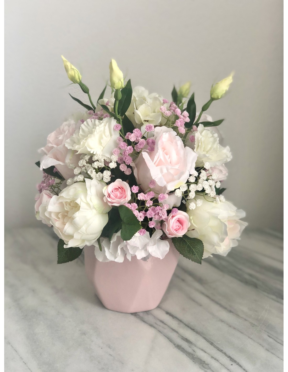 Seidenblumen Arrangement in einer Vase (Puderrosa)