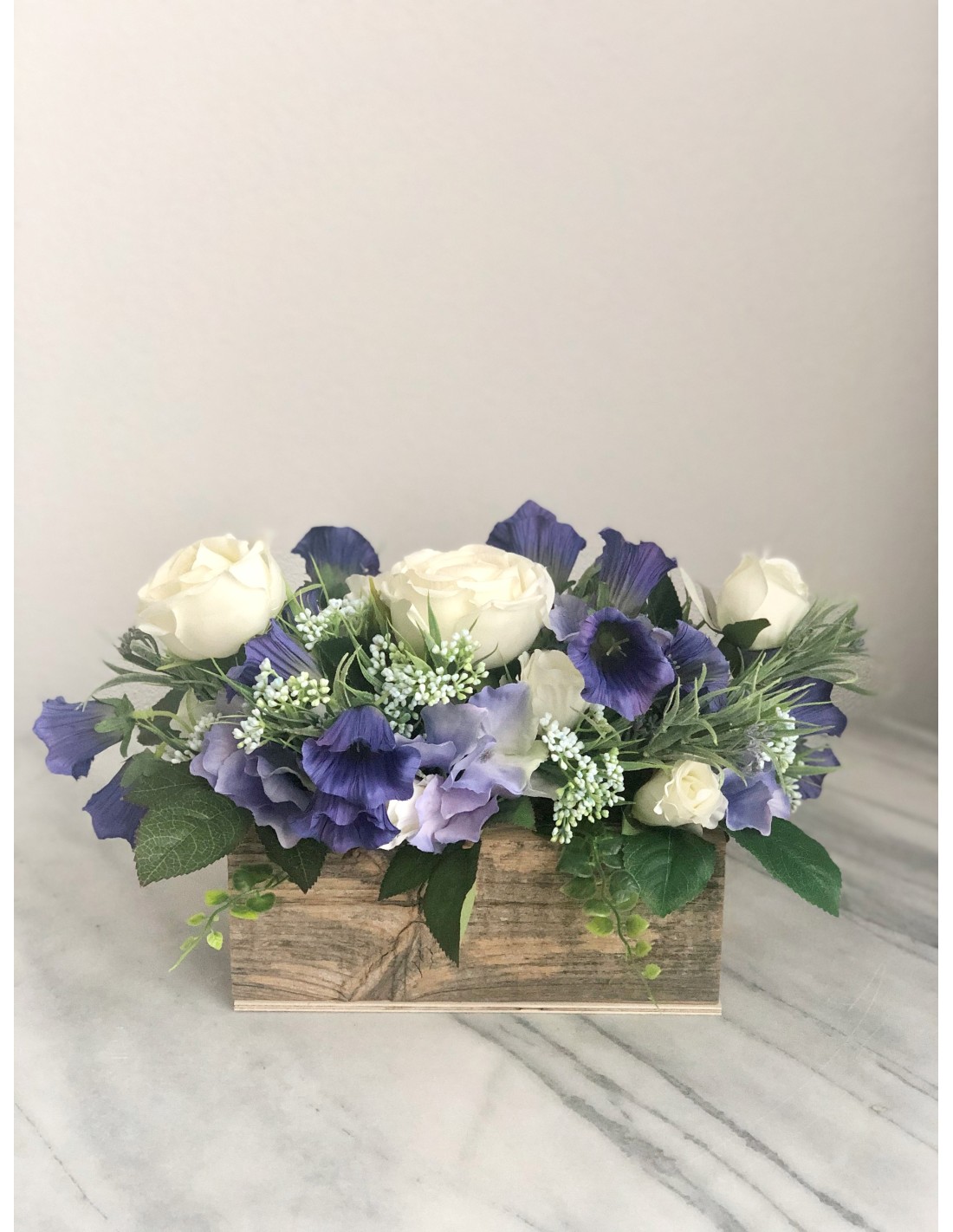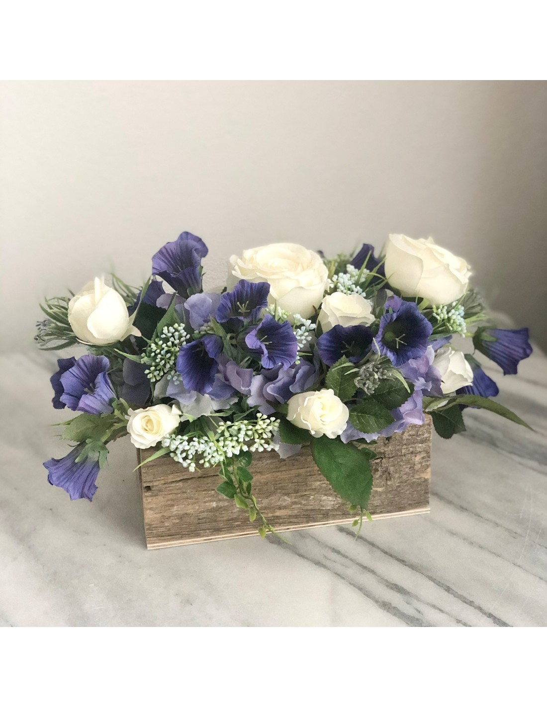 Die handgemachten Arrangements unserer Floristinnen sind traumhaftschöne Kreationen aus einer Vielzahl von Kunstblumen: Hortensien, Rosen, Zweigen, Blättern und Beiwerk. Das Arrangement hat eine Höhe von ca. 22 cm., Breite von ca. 40 cm., Tiefe von ca. 28 cm.Unsere Kunstblumen-Arrangements sind individuell angefertige Einzelstücke und können auch nur einmal genau in dieser Art zu bestellt werden.