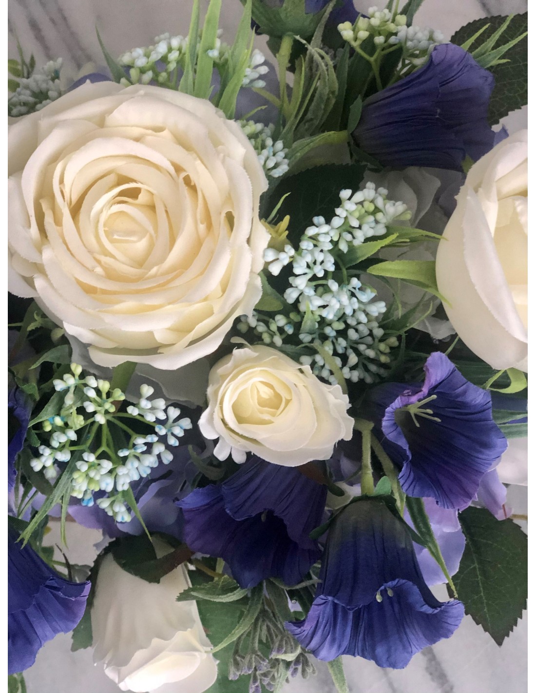 Die handgemachten Arrangements unserer Floristinnen sind traumhaftschöne Kreationen aus einer Vielzahl von Kunstblumen: Hortensien, Rosen, Zweigen, Blättern und Beiwerk.