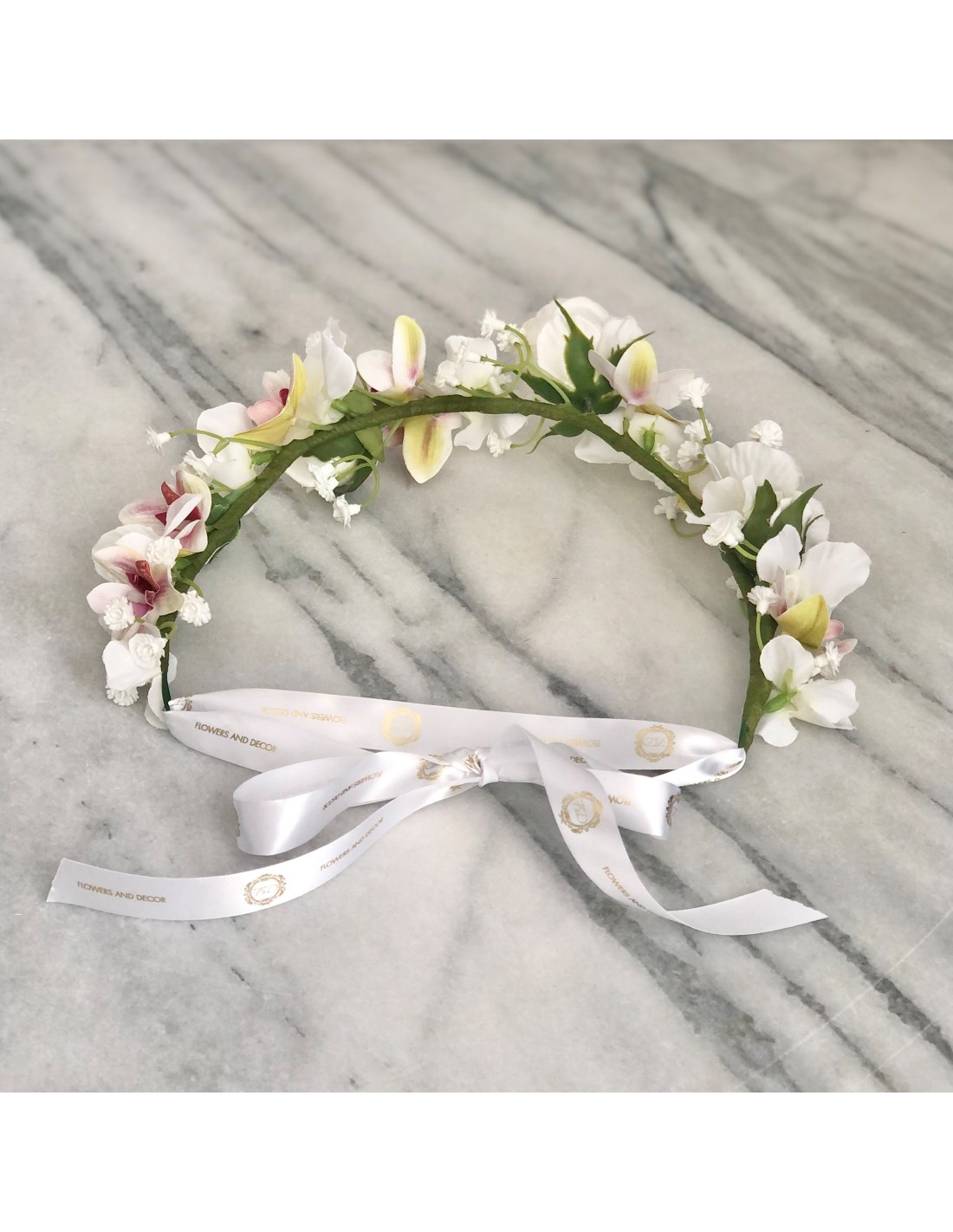 Flower Crown - Kunstblumen Krone mit Orchideen