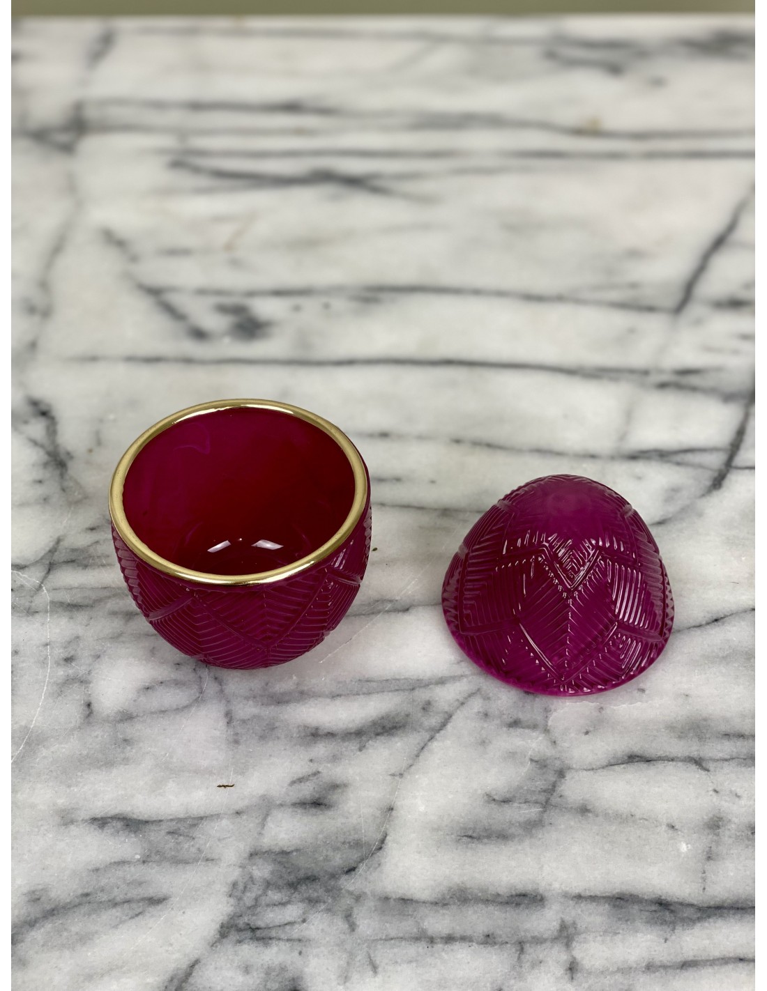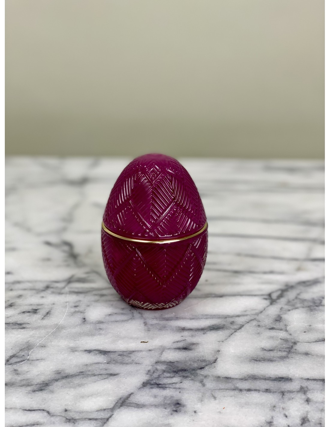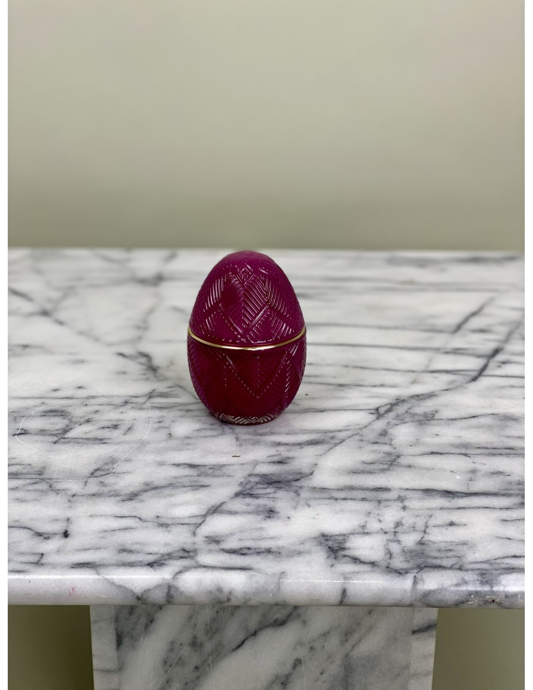 Dekoratives Glas-Ei in Bordeaux mit geometrischem Reliefmuster
