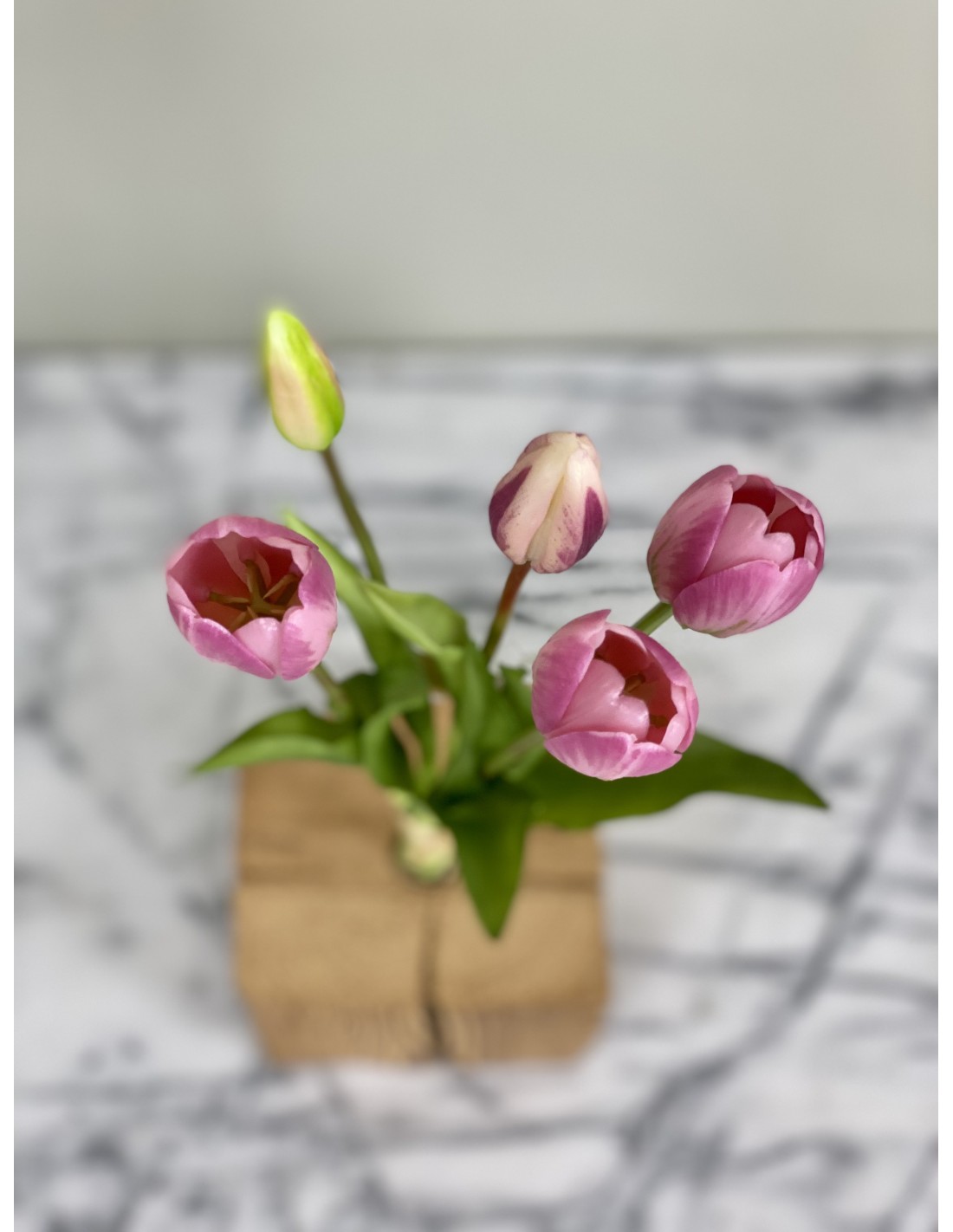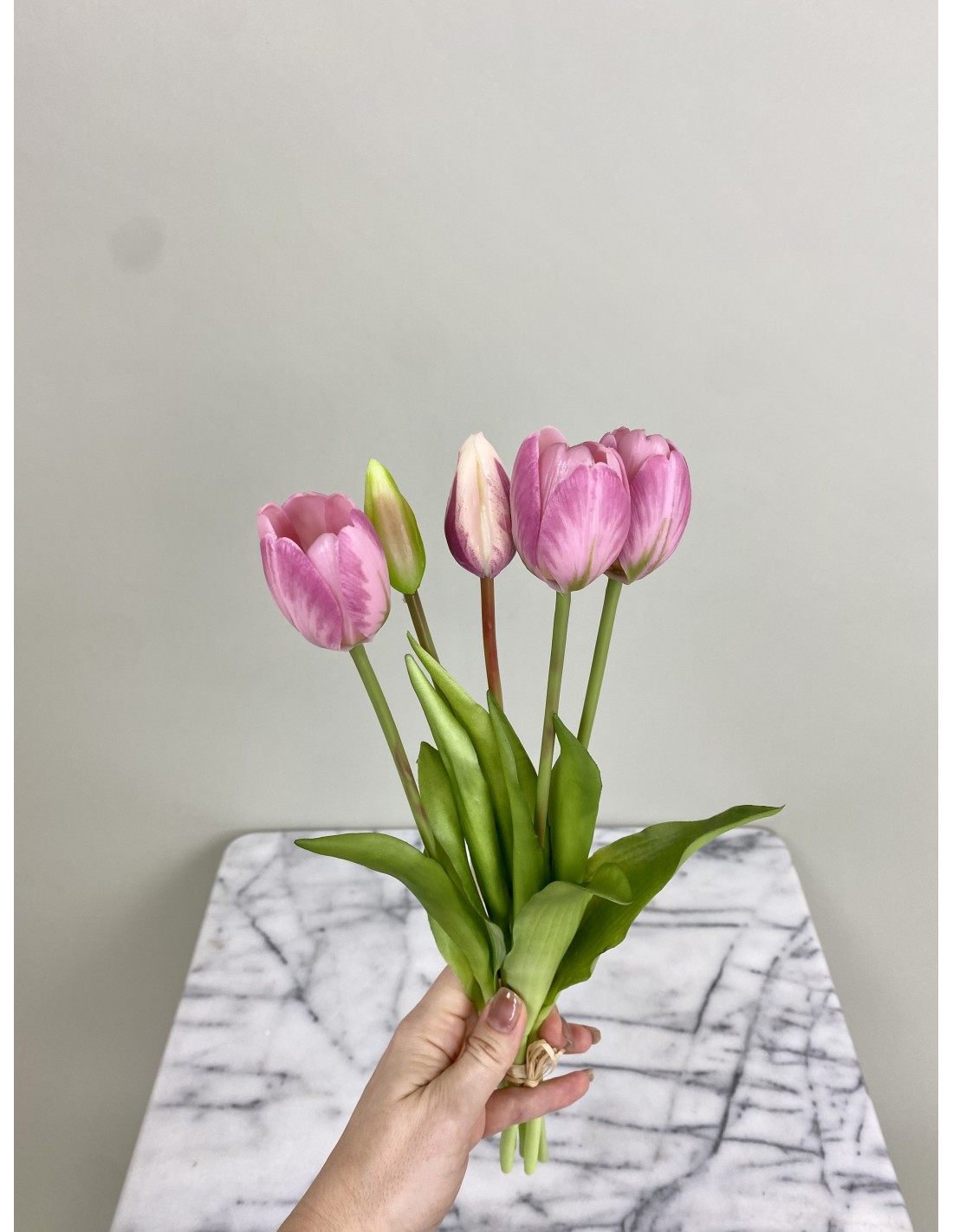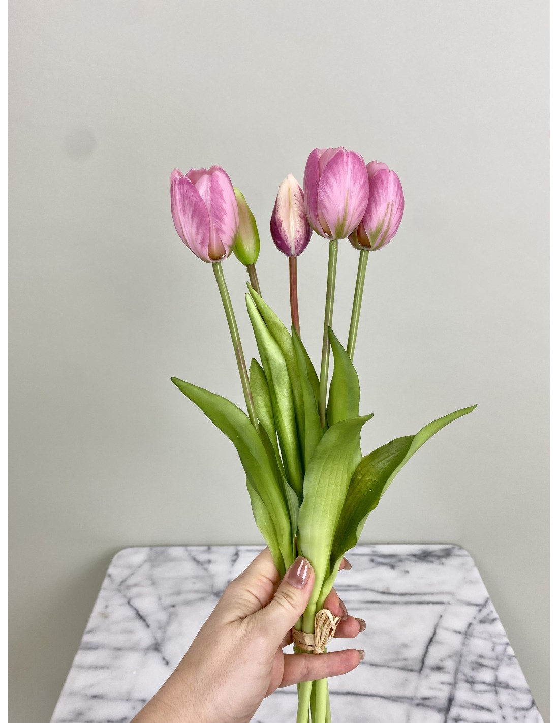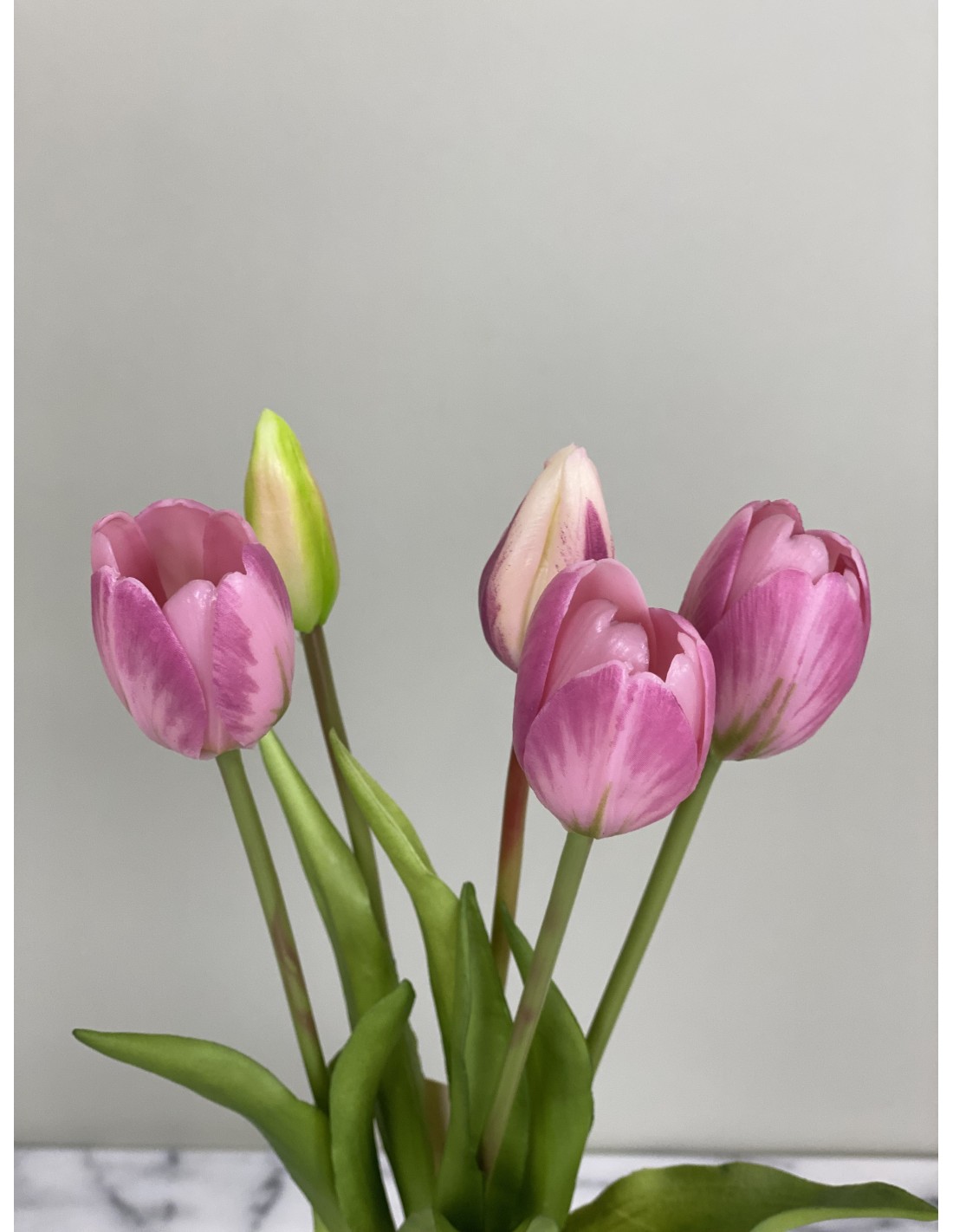 Diese wunderschönen künstliche rosa Tulpen 5er-Bund "Real Touch". Dank der liebevoll der Natur nachempfundenen Gestaltung und Real-Touch-Ausführung sehen die Tulpen täuschend echt aus und eignen sich hervorragend als dekoratives Element in Ihren Geschäftsräumen oder Ihrem Zuhause oder Büro. Sie erfordern keine Pflege und behalten ihre Schönheit für viele Jahre bei. Diese Tulpen, die nicht verblühen, bringen Frische und Lebendigkeit in Ihre Räumlichkeiten.