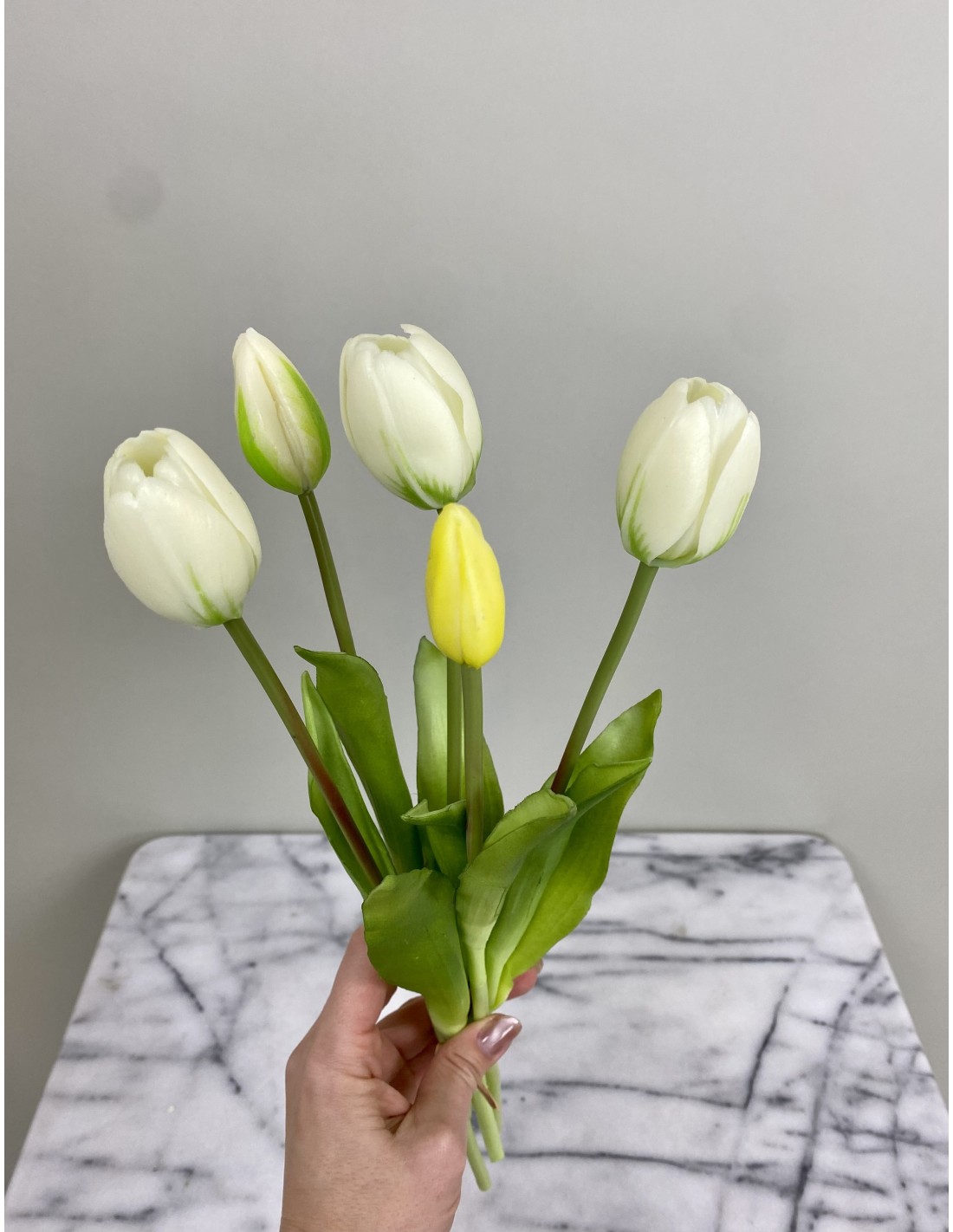 Diese wunderschönen künstliche Tulpen 5er-Bund "Real Touch". Dank der liebevoll der Natur nachempfundenen Gestaltung und Real-Touch-Ausführung sehen die Tulpen täuschend echt aus und eignen sich hervorragend als dekoratives Element in Ihren Geschäftsräumen oder Ihrem Zuhause oder Büro. Sie erfordern keine Pflege und behalten ihre Schönheit für viele Jahre bei. Diese Tulpen, die nicht verblühen, br