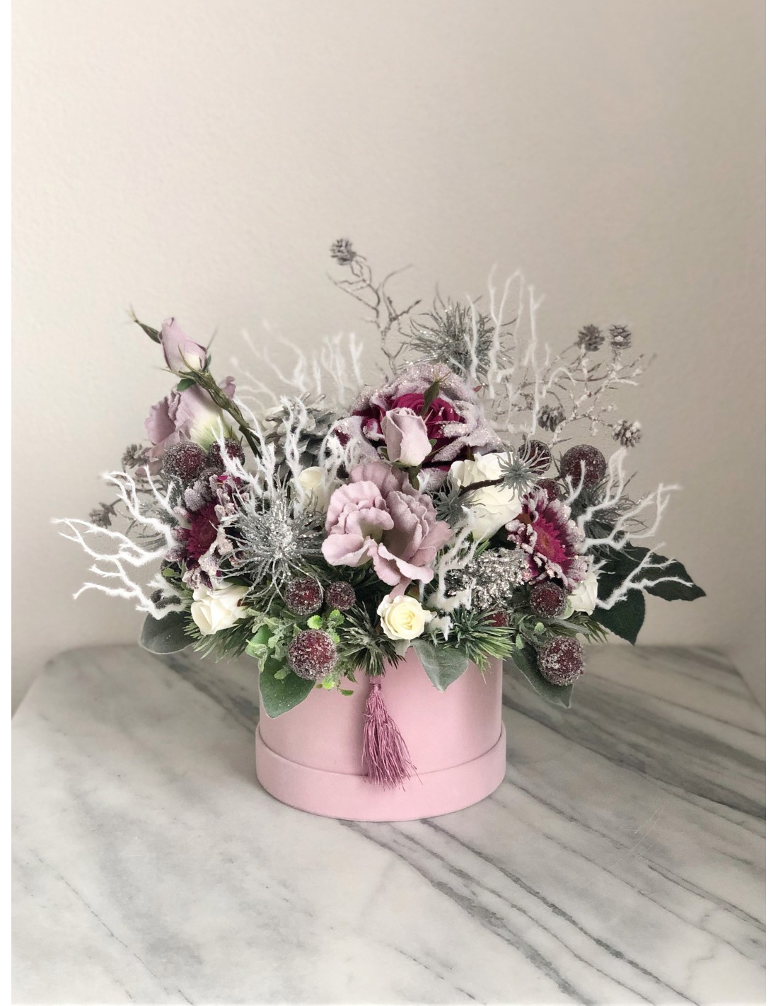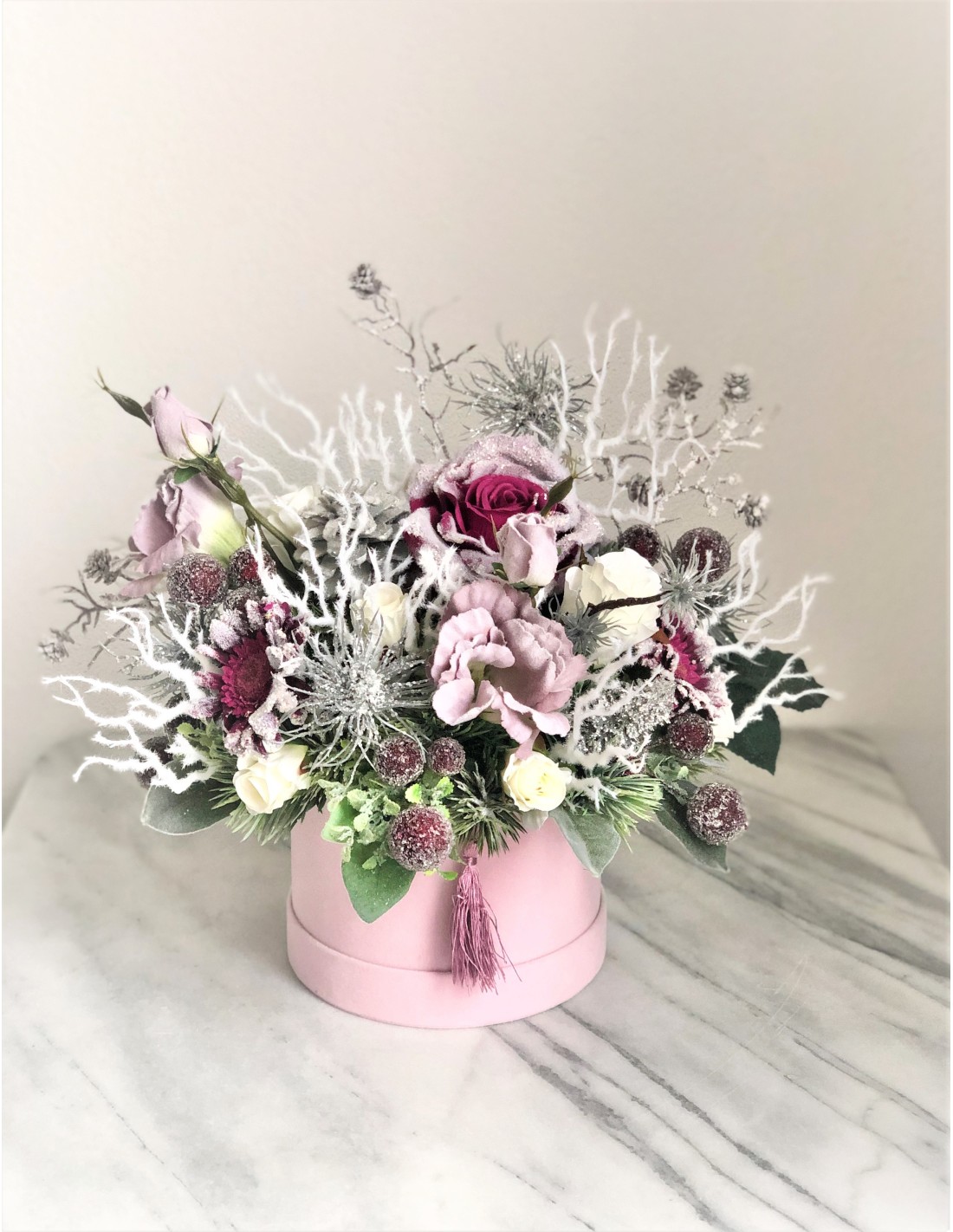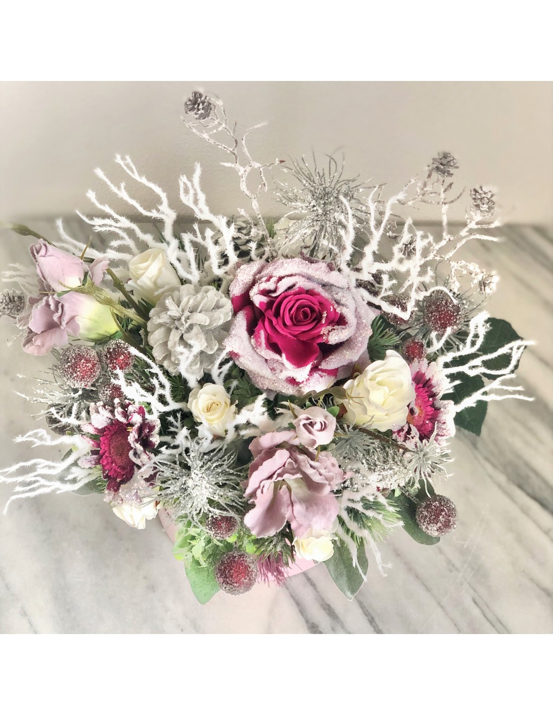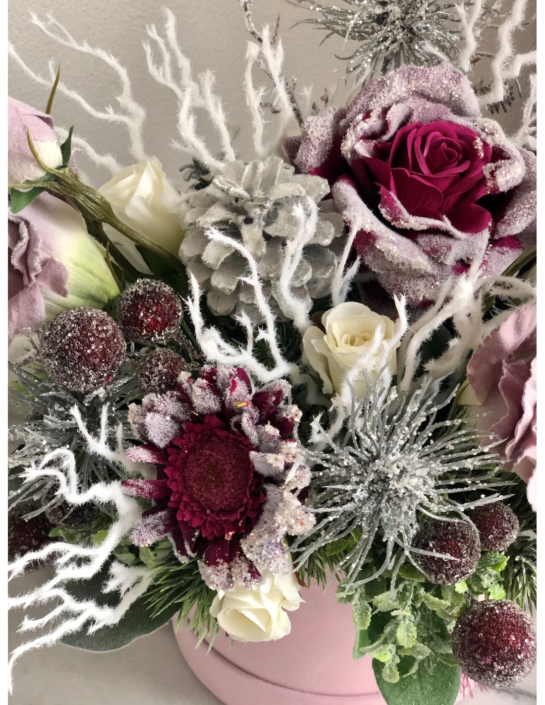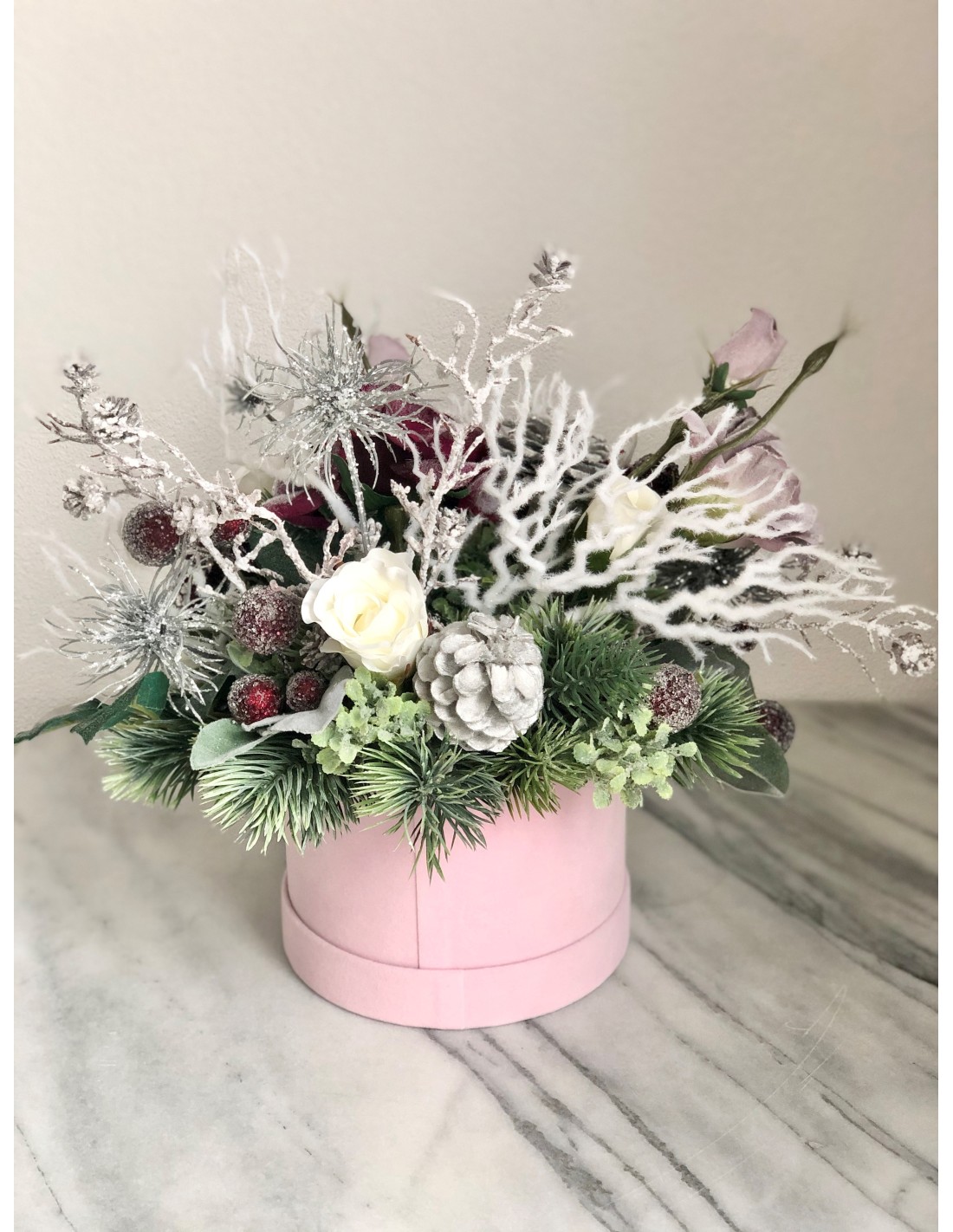 Weihnachtliches Arrangement in einer Velour Box