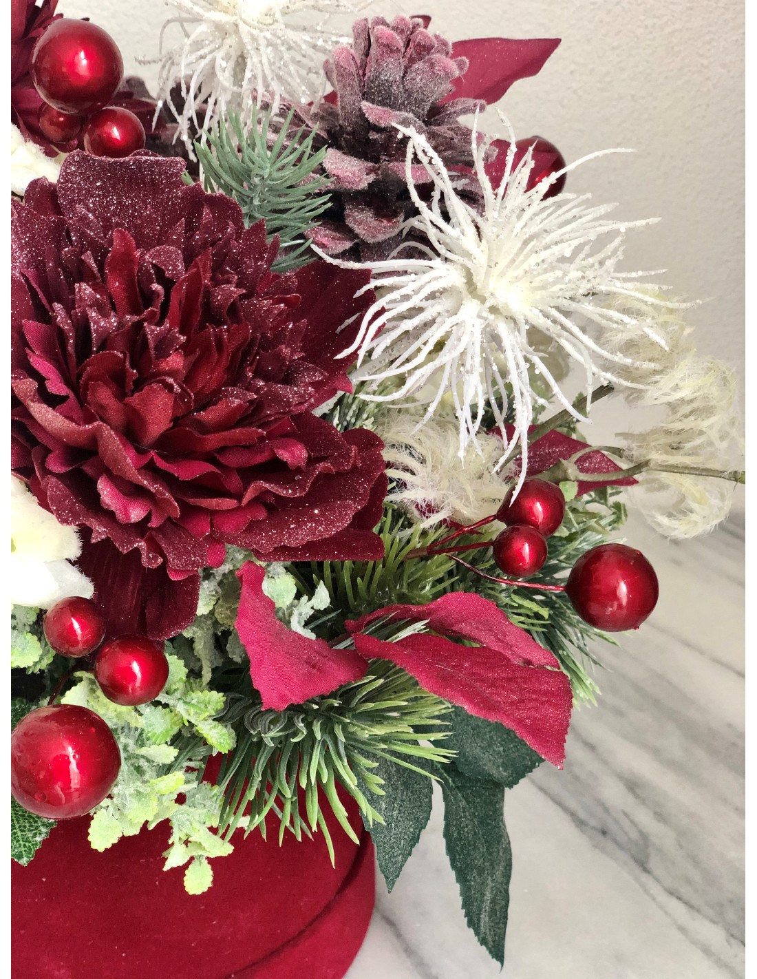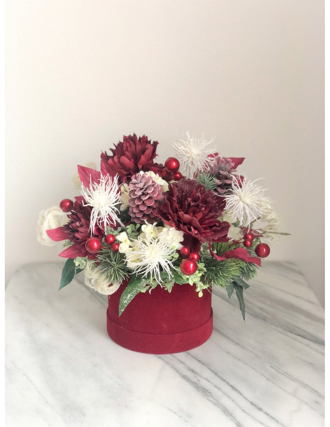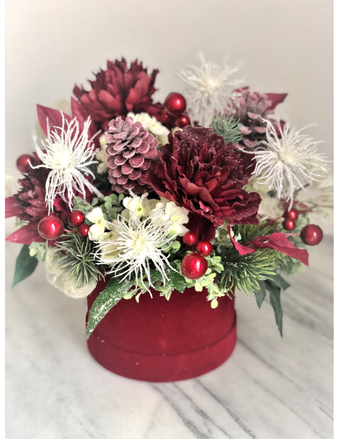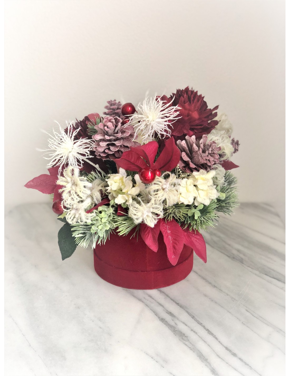 Winterliches Arrangement in einer Velour Box