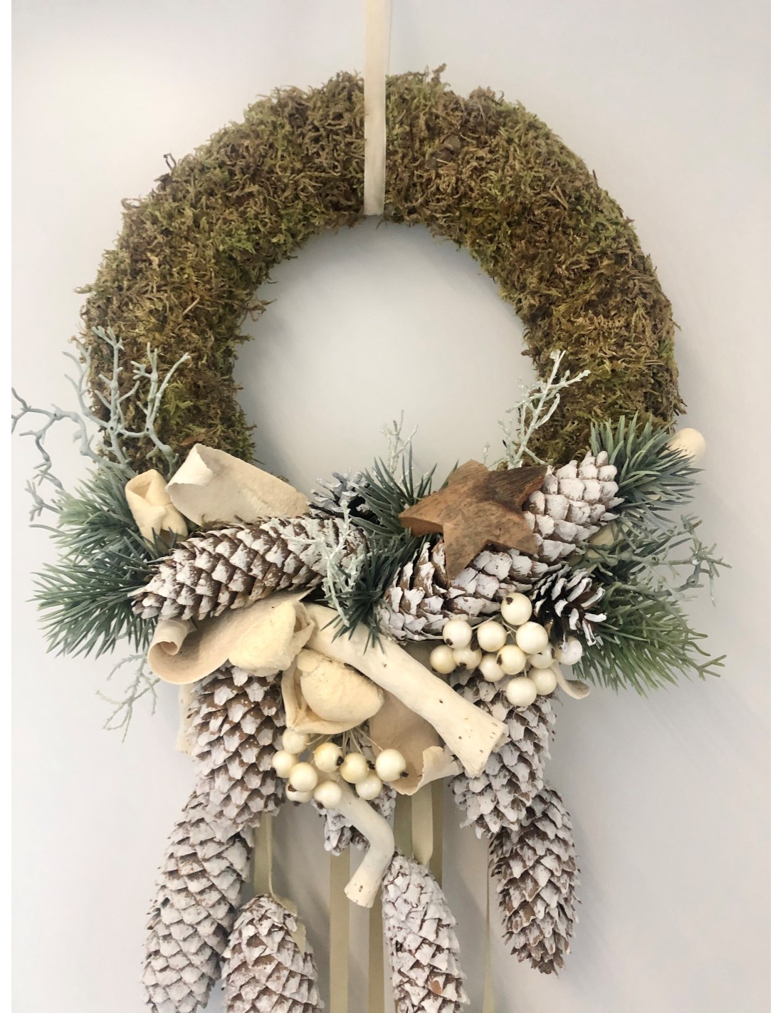 Dieser Deko-Kranz zaubert Winterstimmung in jedes Haus. Die weissen Beeren und Äste sowie Tanne und Blätter passen perfekt in die kalte Jahreszeit.